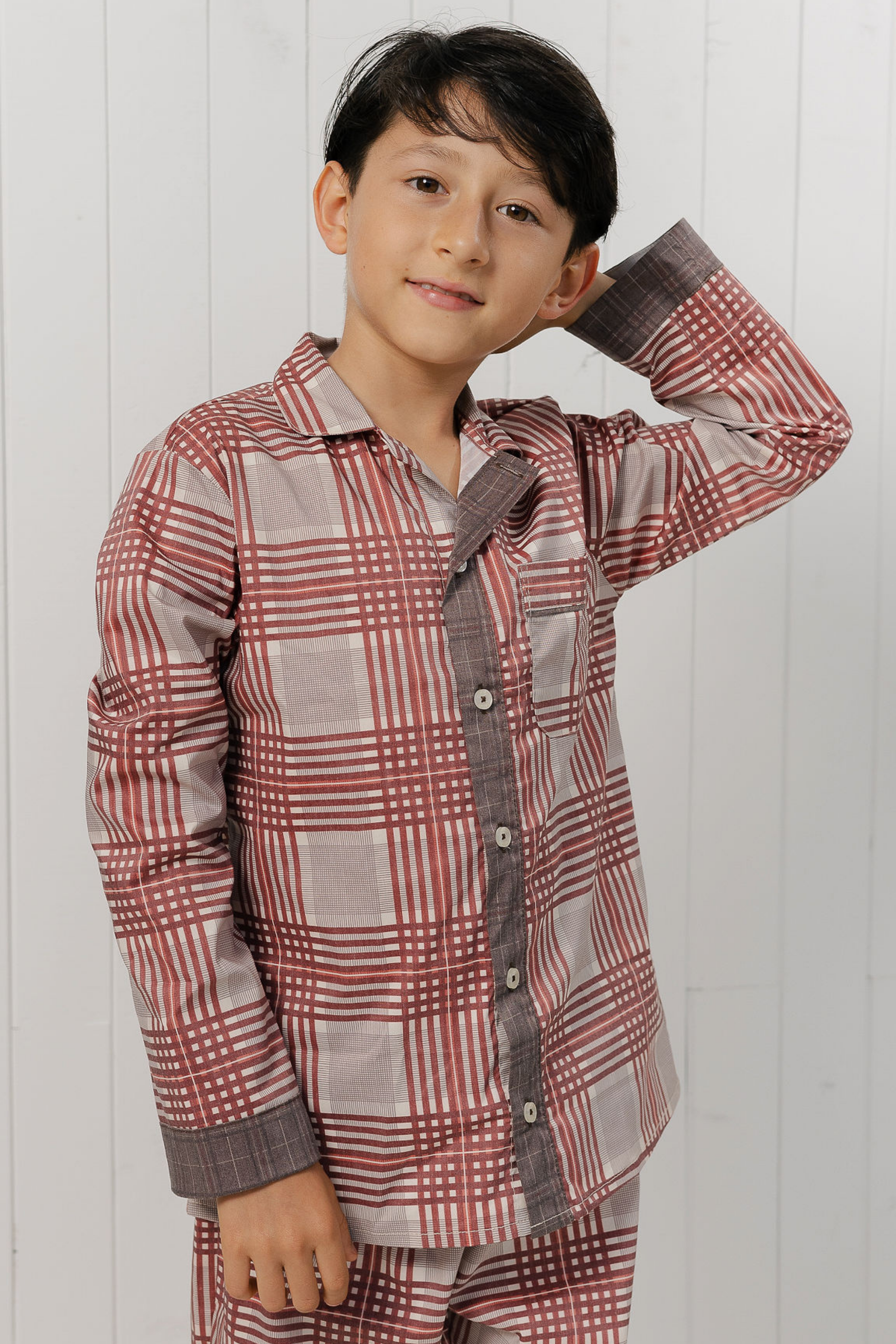 Pantalon silueta amplia, pretina combinada y con bolsillos. La camisa de Mujer y de niña viene con cuello tipo babero que está super en tendencia. Para los hombres de la familia, camisa sobria y elegante con cartera y puños combinados.