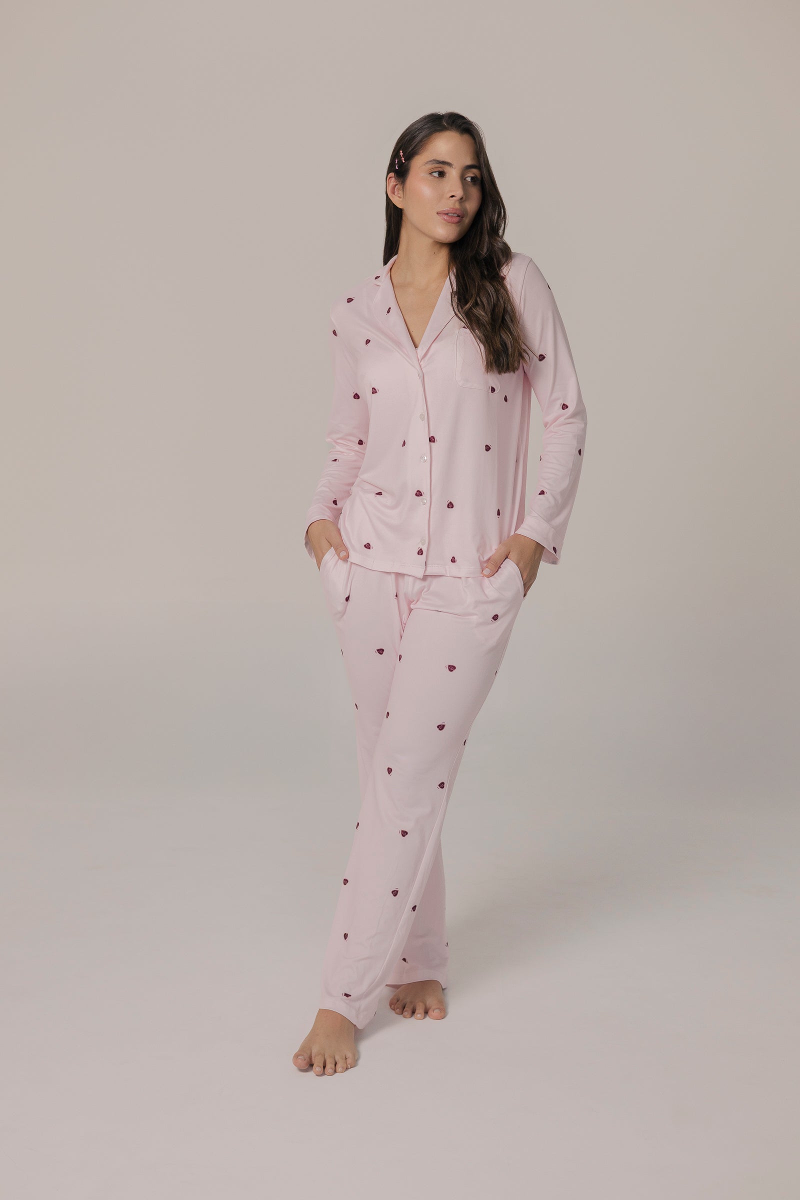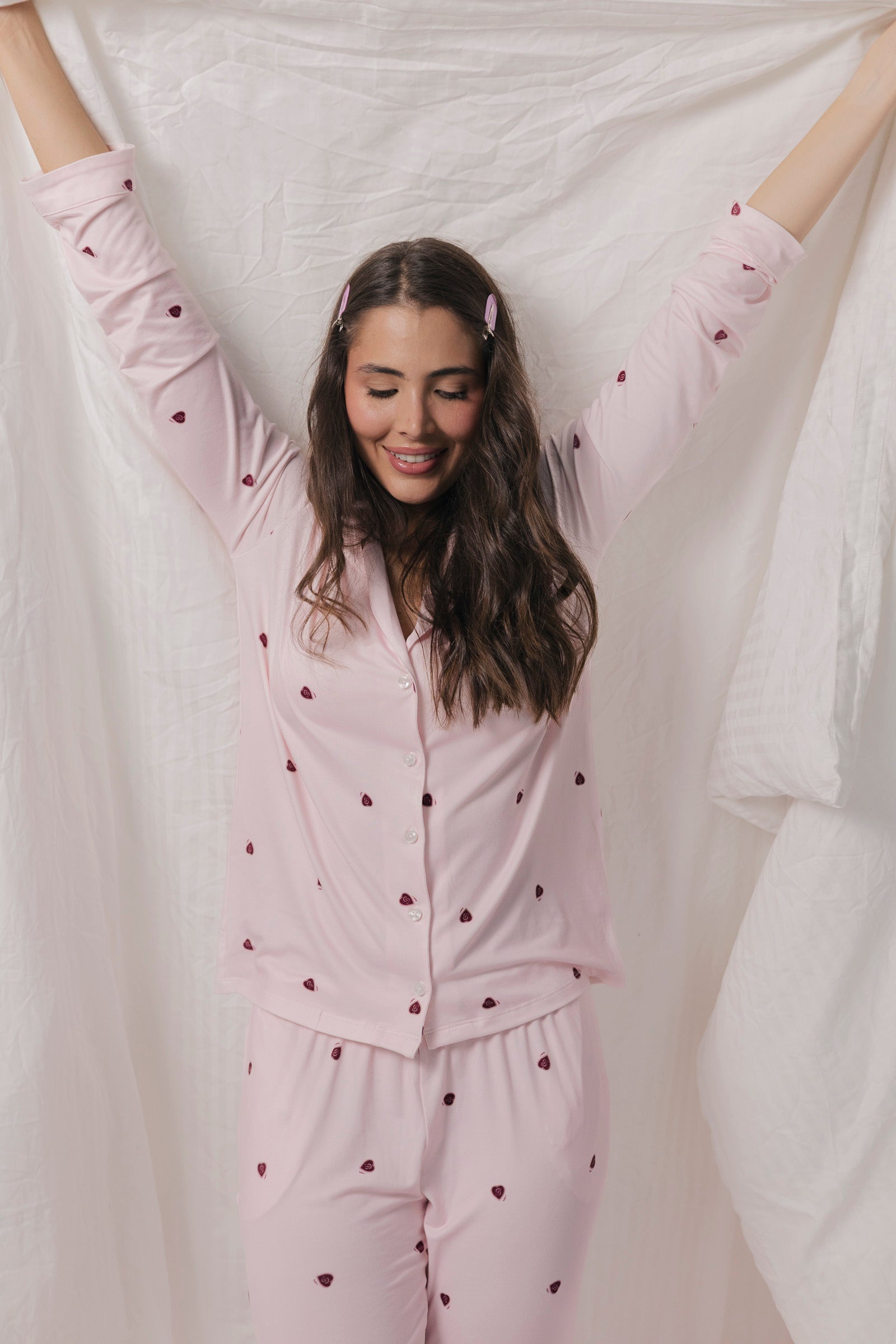 El Sweet Heart Set de pantalón con camisa de manga larga fue diseñado para acompañarte en esos momentos donde eliges reconectar contigo.
